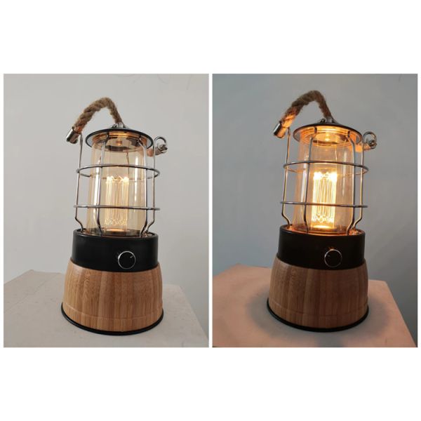 With our unique PCB and power source design, this bamboo camping lantern can be rechargeable by 1 piece of 3.7v 18650 battery, and also can be powered by 3 pcs AA dry batteries.